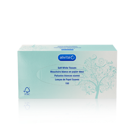 - One box of 150 tissues with two layers of cellulose