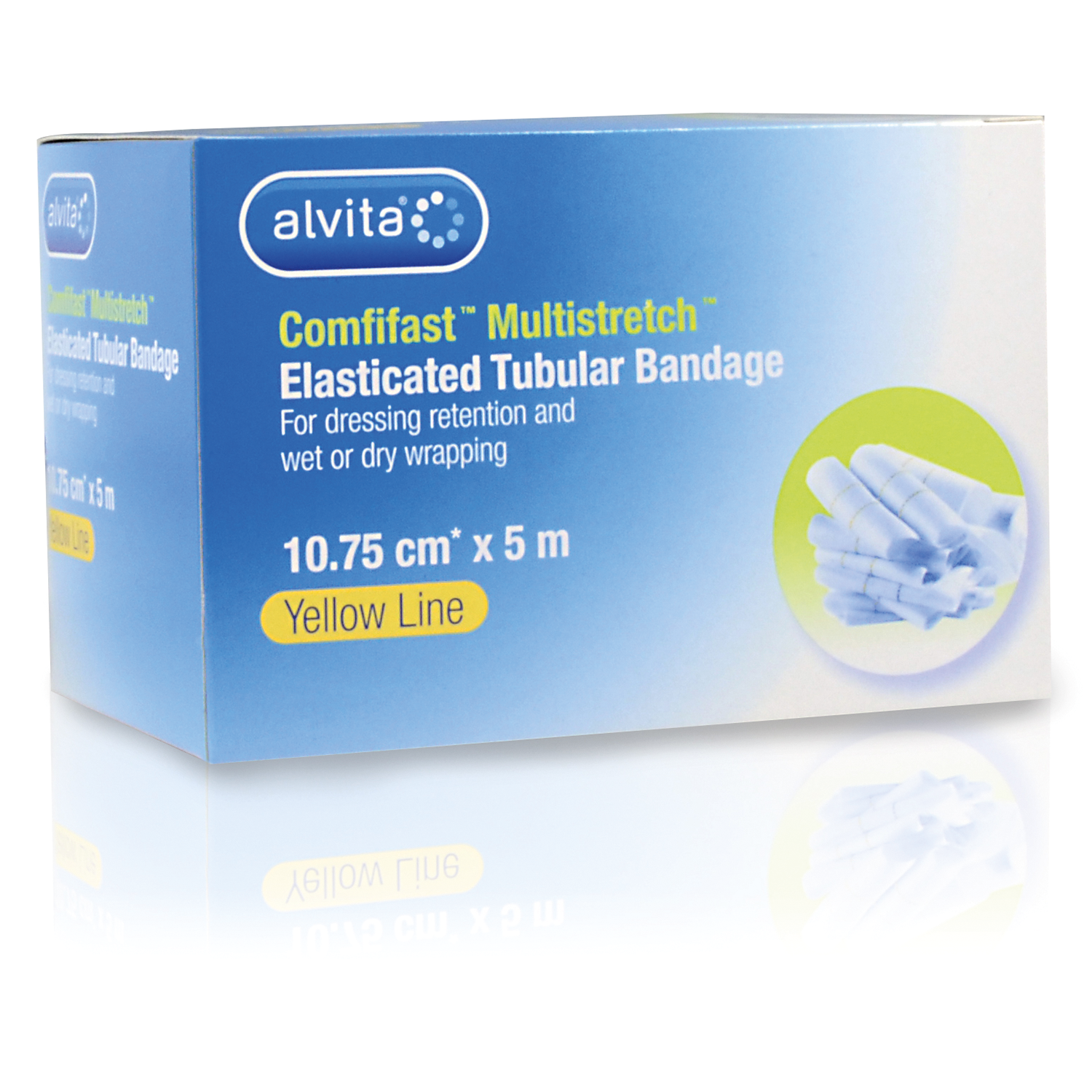 The Alvita Comfifast™ Multistretch™ Yellow 10.75cm x 5m bandage is designed for patients with extra-large limbs and small trunks. Indicated for use on patients with eczema, controlled lymphodema and venous disease and can also be us...ed for dressing retention and skin covering for fragile skin. It is designed with freedom of movement in mind, and features Multistretch™ technology, allowing for movement in multiple directions: radial, longitudinal and diagonal, for patient comfort. The versatile bandage is also suitable to wear under compression bandages or hosiery garments.
