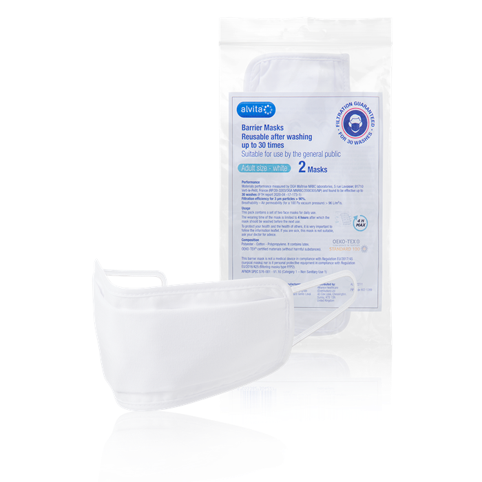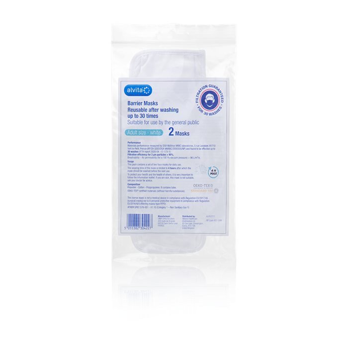This pack contains a set of two face masks for daily use.