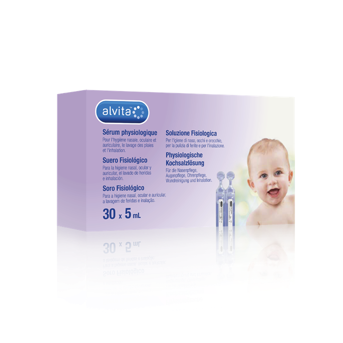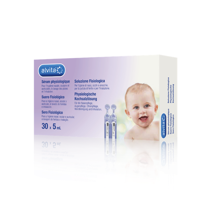 El Suero fisiológico Alvita es una solución isotónica estéril de cloruro de sodio al 0,9% en ampollas monodosis para la higiene de los ojos, la nariz, los oídos, el lavado de heridas y para inhalación. Está recomendado para bebés, n...iños y adultos