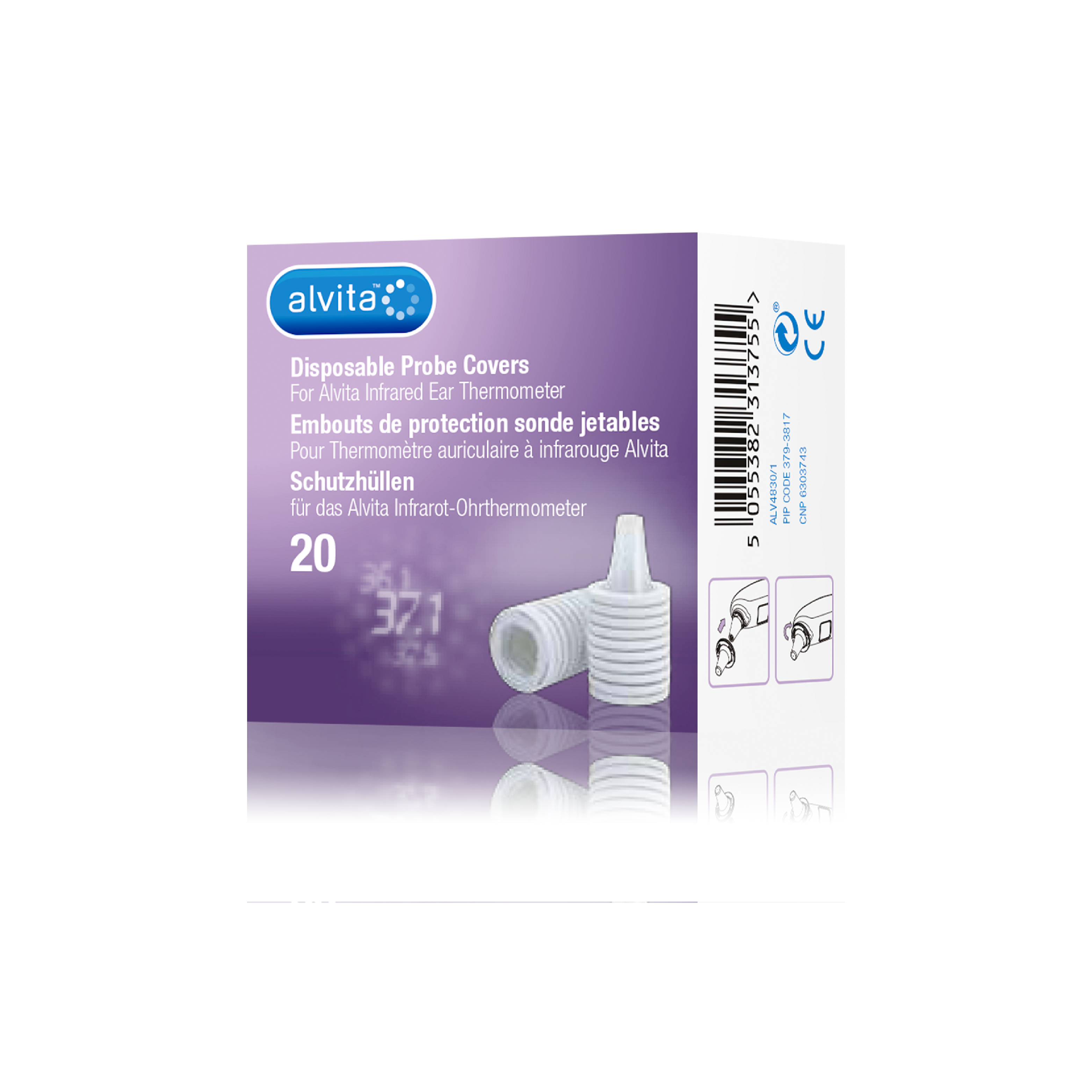 - Garantit hygiène et fiabilité tout au long de l'utilisation du thermomètre auriculaire infrarouge Alvita