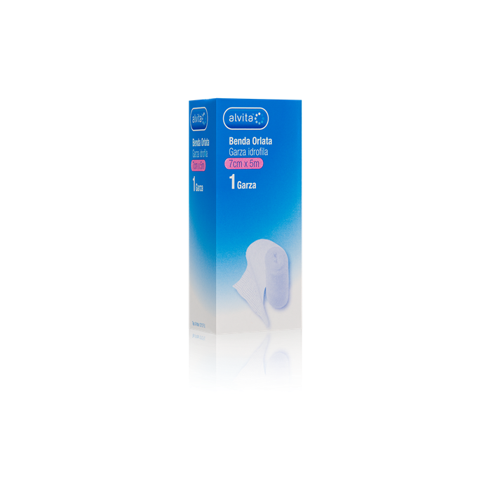 Benda orlata garza idrofila: È naturalmente bianca non contiene coloranti. È lavabile e riutilizzabile. Non sterile. 100% cotone a norma di legge n.883 del 26/11/1973