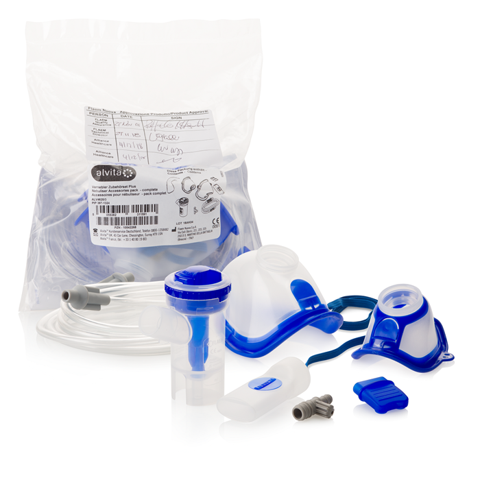 To ensure effective inhalation therapy in the long term, certain components of the inhalation device should be replaced annually. The Alvita accessory sets are available for regular replacement.
