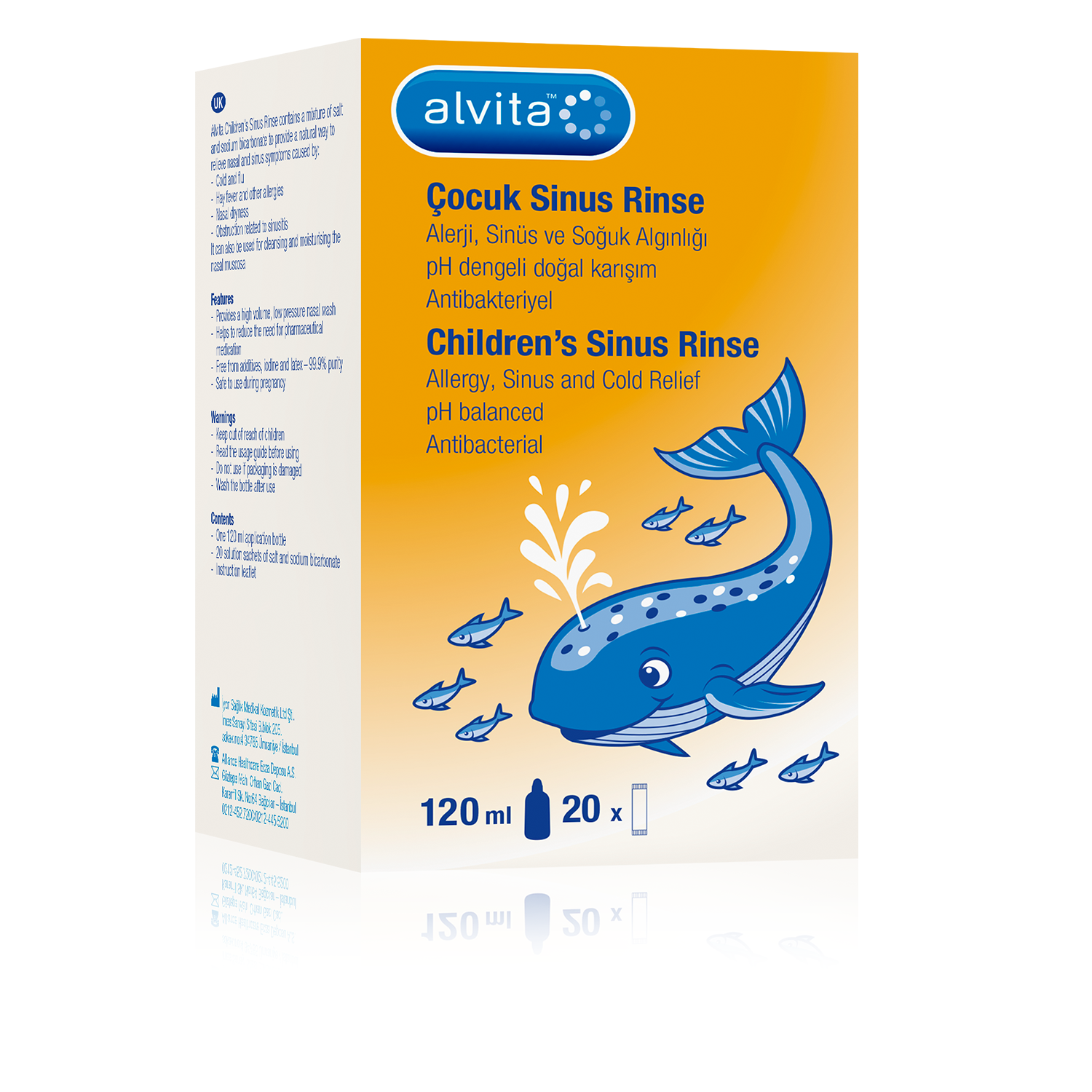 - Alvita Sinus Rinse Childrens contains a salt and sodium bicarbonate mixture.